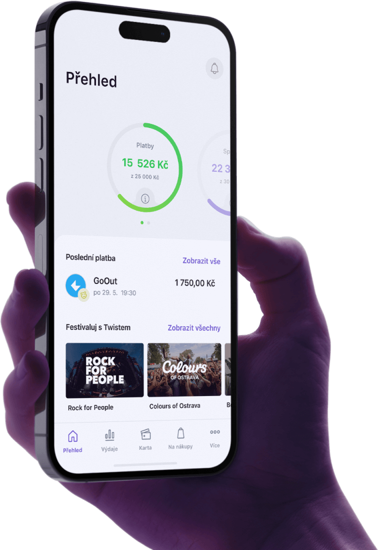 - Virtuální Twisto kartu, se kterou můžeš platit kdekoli i nabít festivalový náramek.